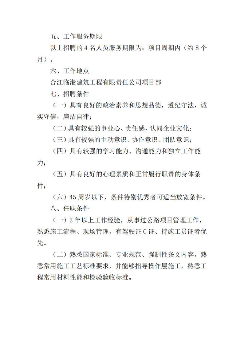 關(guān)于招聘派遣至合江臨港建筑工程有限責(zé)任公司項目現(xiàn)場管理人員的公告