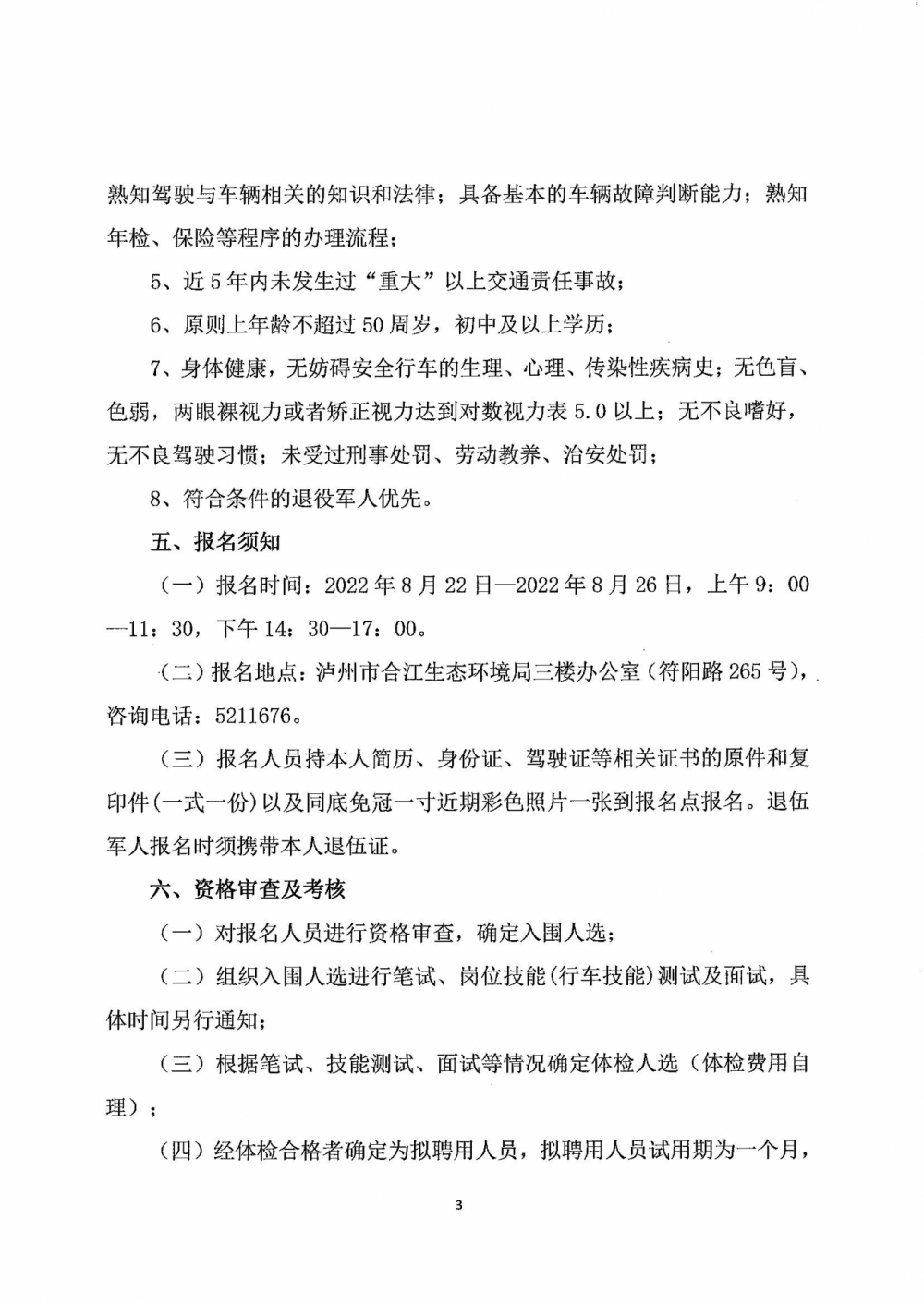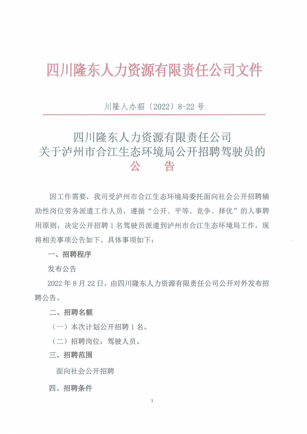 四川隆東人力資源有限責(zé)任公司 關(guān)于瀘州市合江生態(tài)環(huán)境局公開(kāi)招聘駕駛員的公告