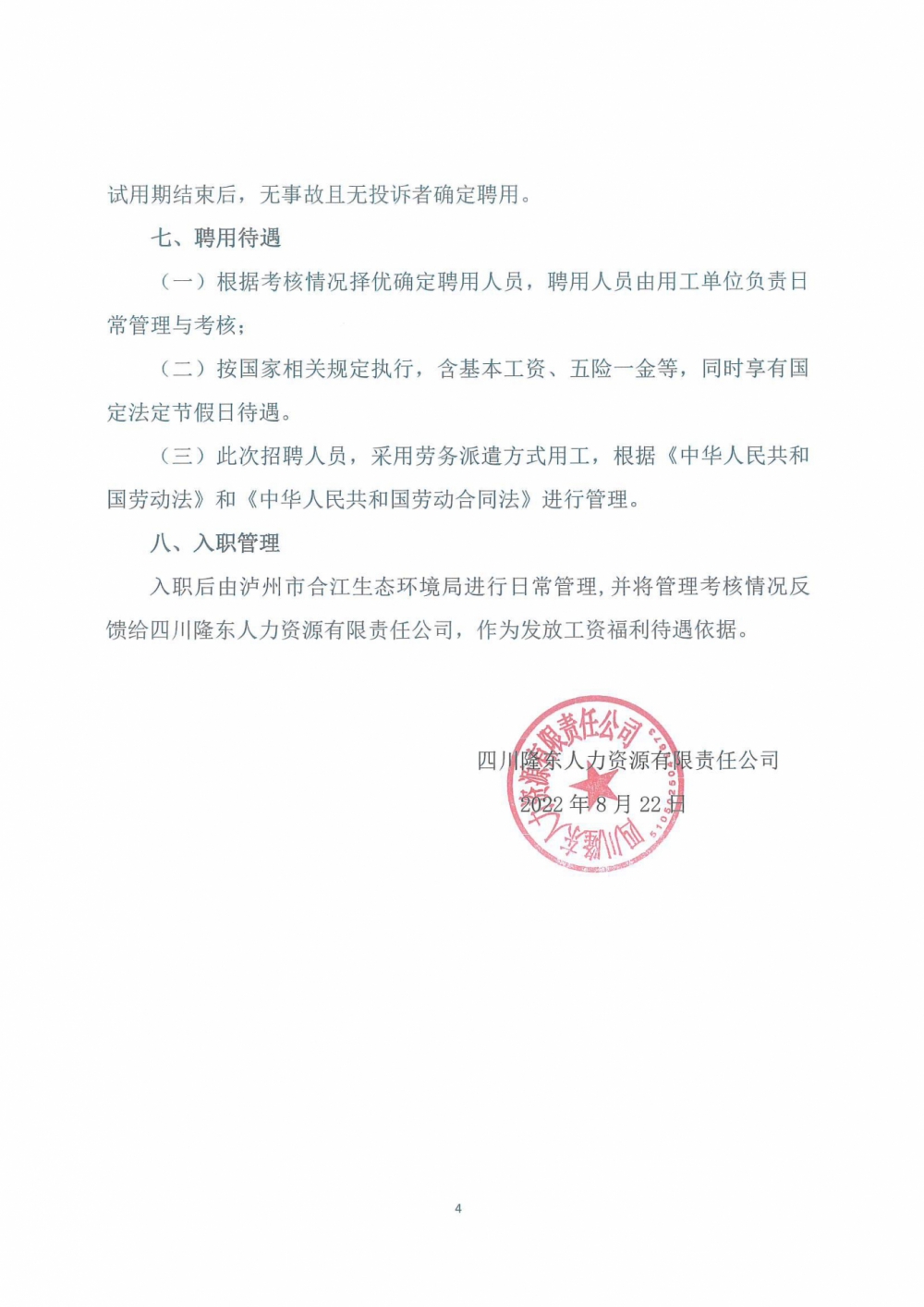 關(guān)于錄用派至瀘州酒業(yè)物業(yè)管理有限責(zé)任公司勞務(wù)工作人員的公示