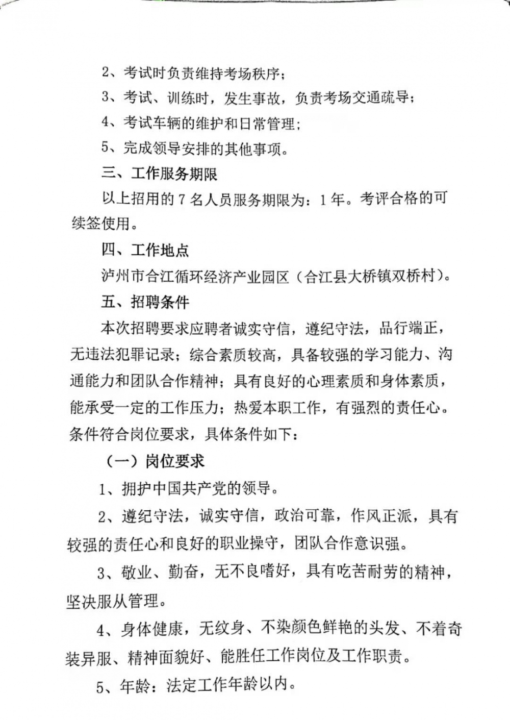 關(guān)于招聘派遣至合江永盛汽車(chē)服務(wù)有限公司社會(huì)輔助考試員的公告