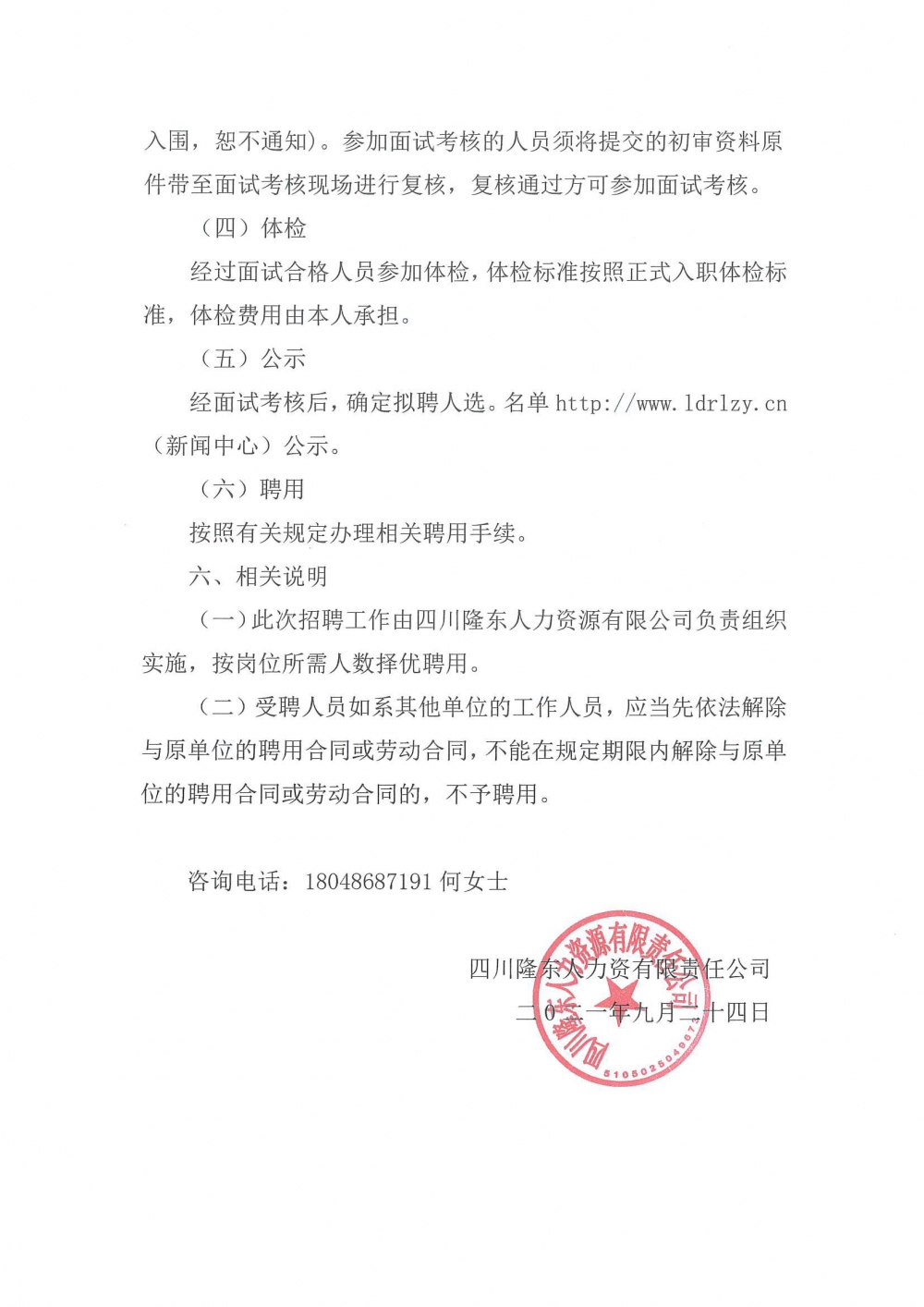 四川隆東人力資源有限公司關(guān)于招聘項目工作人員的公告