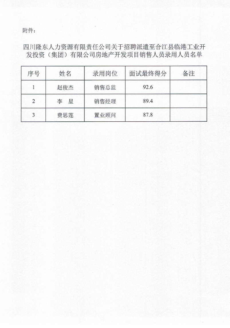 關(guān)于招聘派遣至合江縣臨港工業(yè)開(kāi)發(fā)投資(集團(tuán))有限公司房地產(chǎn)開(kāi)發(fā)項(xiàng)目銷售人員錄用的公示
