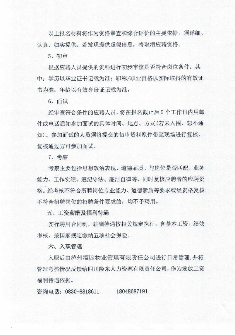 關(guān)于錄用派至瀘州酒業(yè)物業(yè)管理有限責(zé)任公司勞務(wù)工作人員的公示