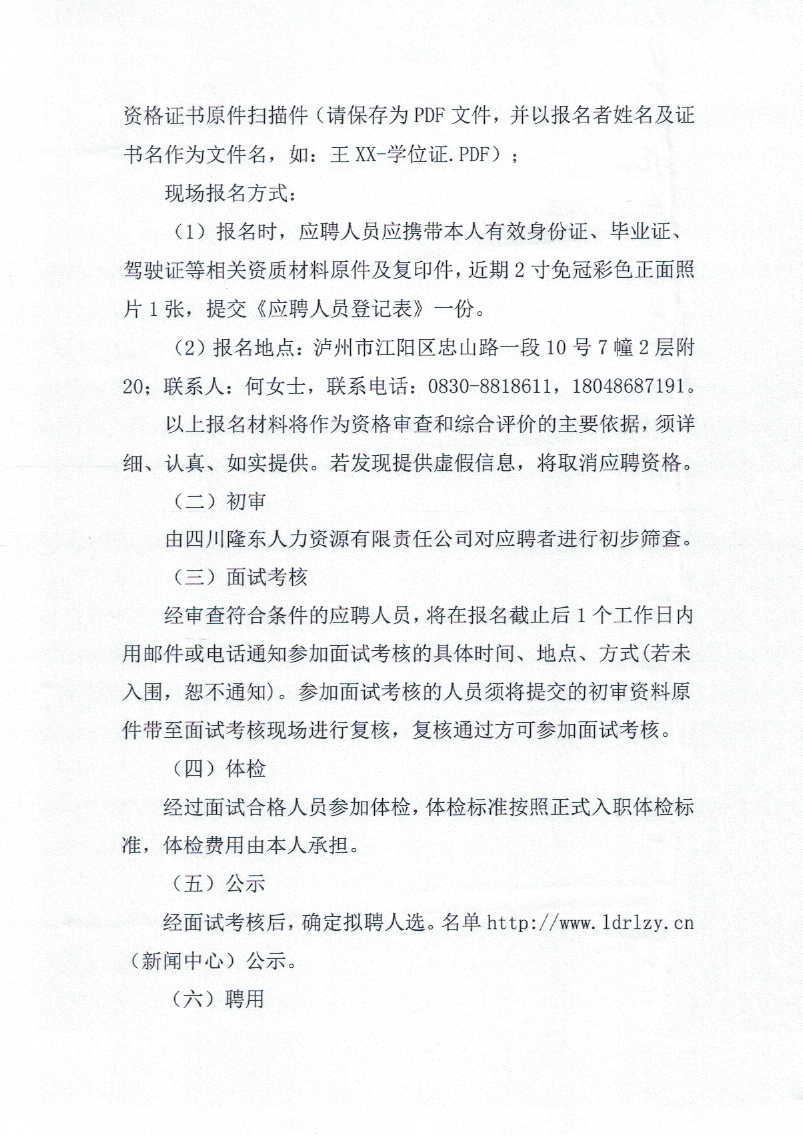 關(guān)于錄用派至瀘州酒業(yè)物業(yè)管理有限責任公司勞務(wù)工作人員的公示