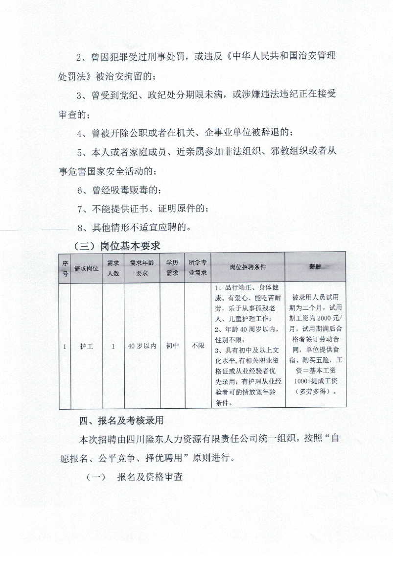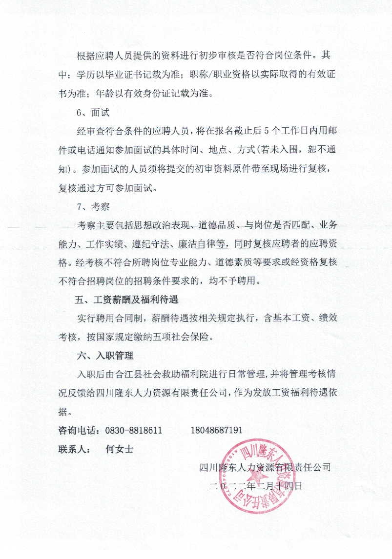 關于招聘派遣至合江縣社會救助福利院勞務工作人員的公告