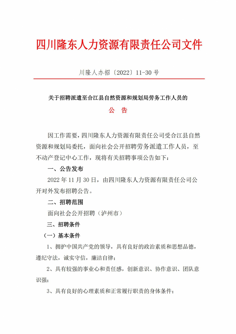 關(guān)于招聘派遣至合江縣自然資源和規(guī)劃局勞務(wù)工作人員的公告