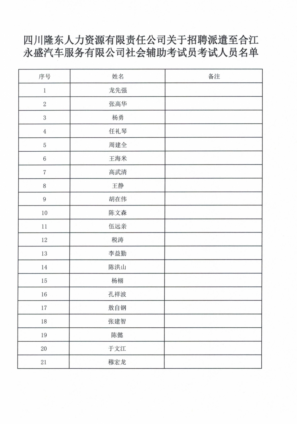 關(guān)于招聘派遣至合江永盛汽車服務(wù)有限公司 社會(huì)輔助考試員考試的(公告)